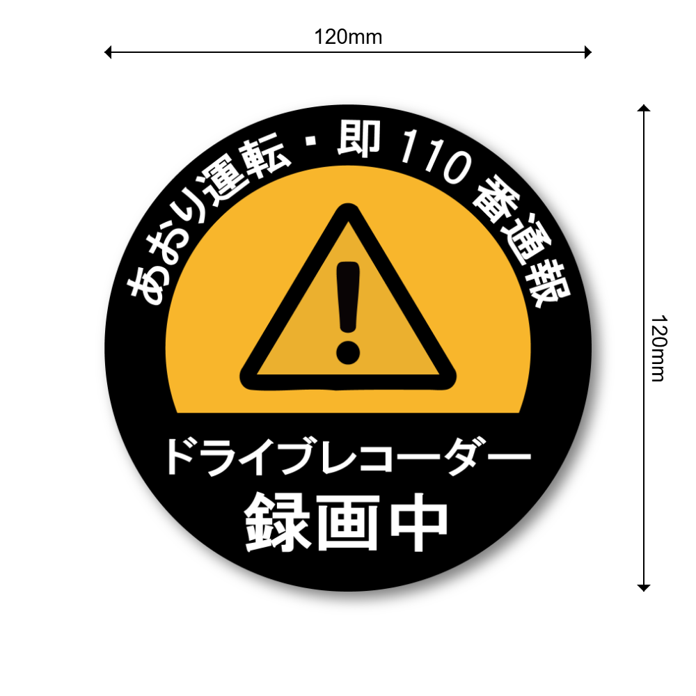 【警告度UP】あおり運転 対策 ステッカー | ドライブレコーダー 録画中 | 即110番通報 警告 シール (120mm角) | 高耐久 耐水 車用 | 効果的な 運転 抑止力 グッズ
