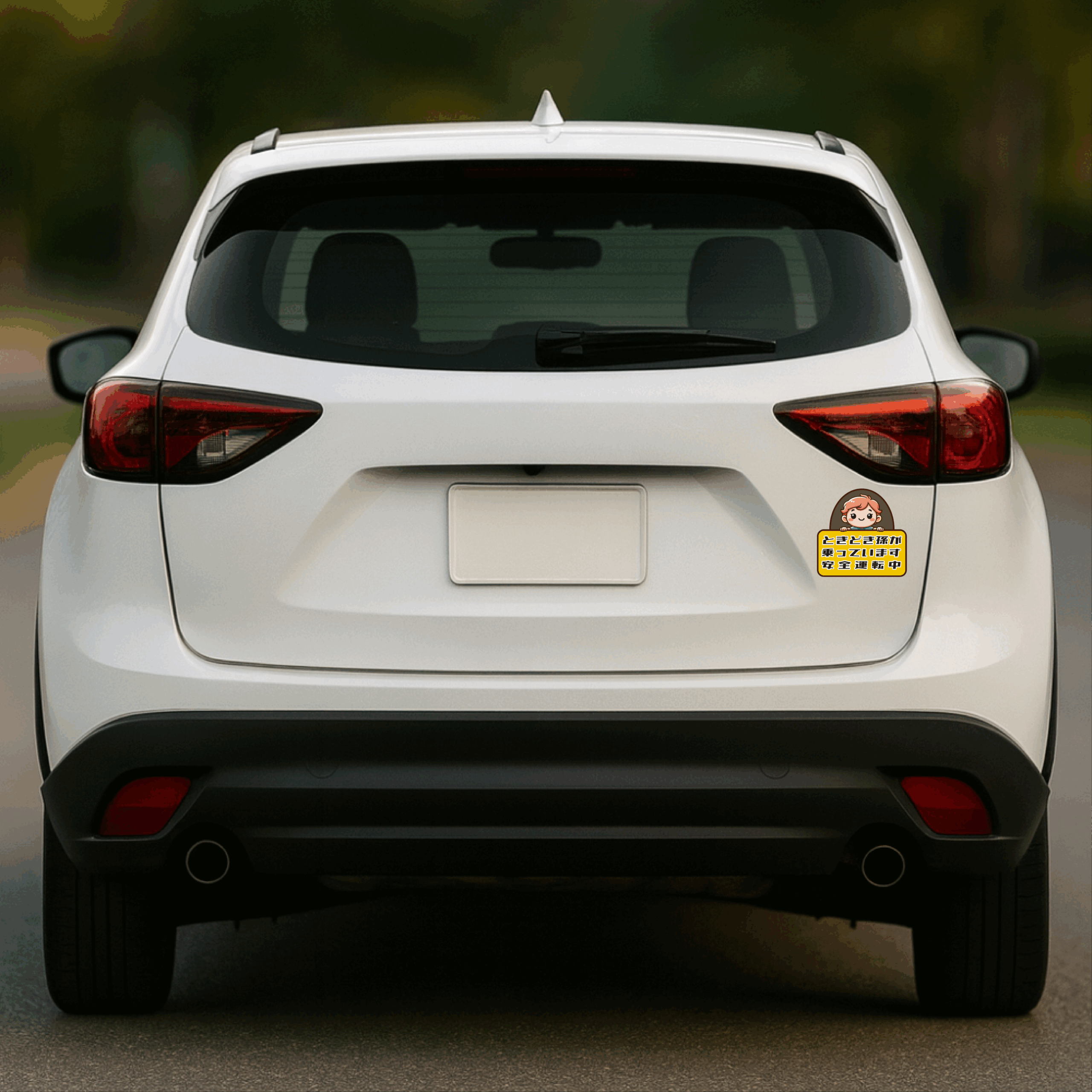 取り付けと活用シーン:車のリアウィンドウやバンパーなど平滑面に最適で、視認性が高く周囲の安全意識を自然に高めます。家族でのお出かけや日常の送迎時に活躍し、おじいちゃん・おばあちゃんの運転をやさしくサポート。可愛いデザインはプレゼントにもぴったりで、楽しいドライブの心強いサインとしておすすめです。