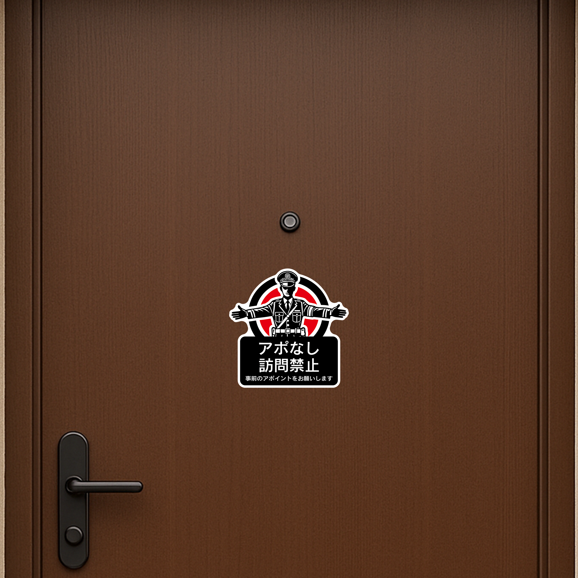 用途:オフィスや事務所の入口に貼って、アポイントなしの訪問を防ぎます。個人宅の玄関に貼って、訪問販売や無断訪問を抑止します。事前のアポイントを促し、効率的な時間管理に役立てます。
