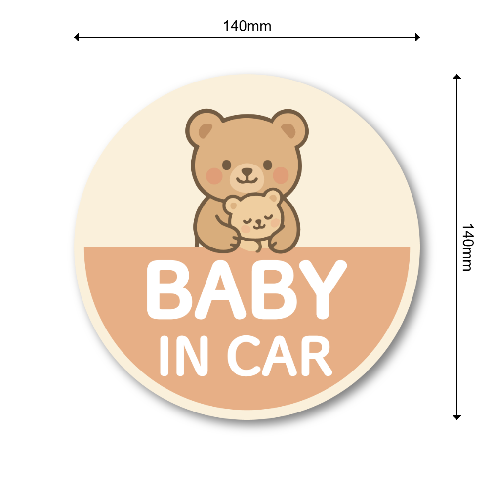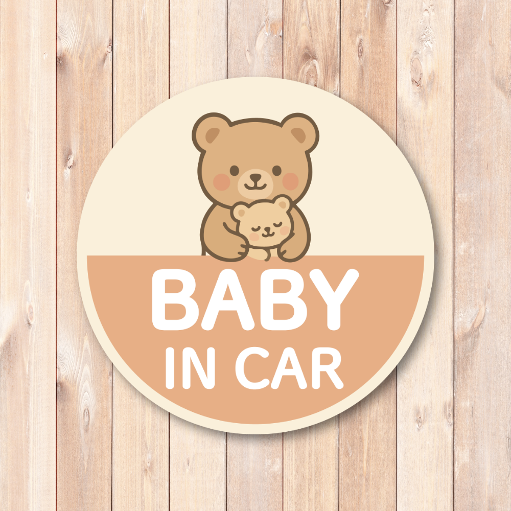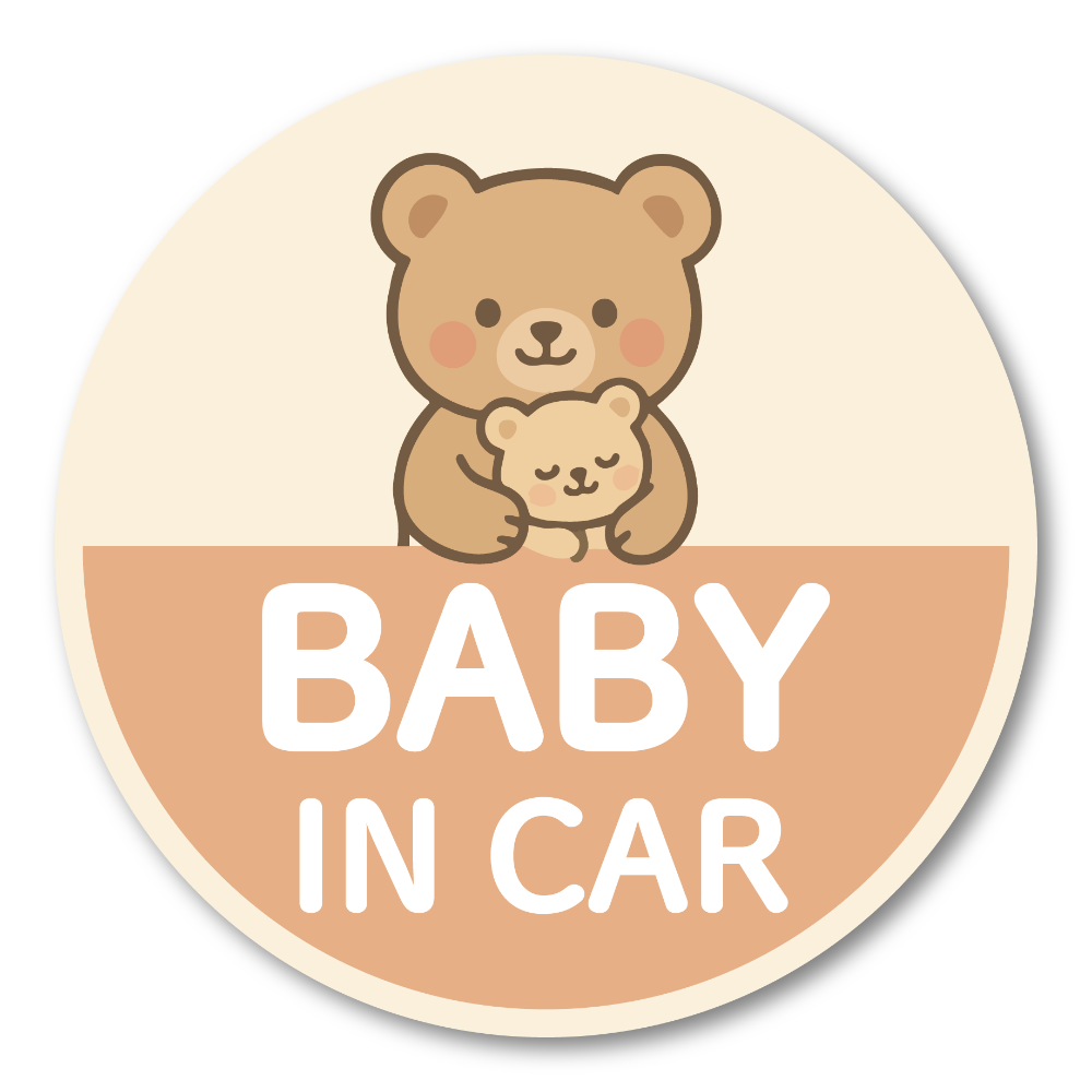 🐻 やさしく伝わる「BABY IN CAR」マグネットサイン:かわいいくまやねこの親子がデザインされたベビーインカーマグネットです。柔らかなパステルカラーと温かみのあるタッチで、「赤ちゃんが乗っています」というメッセージをやさしく伝えます。見る人の心を和ませ、安全運転を促すデザインで、ファミリーカーにぴったりです。