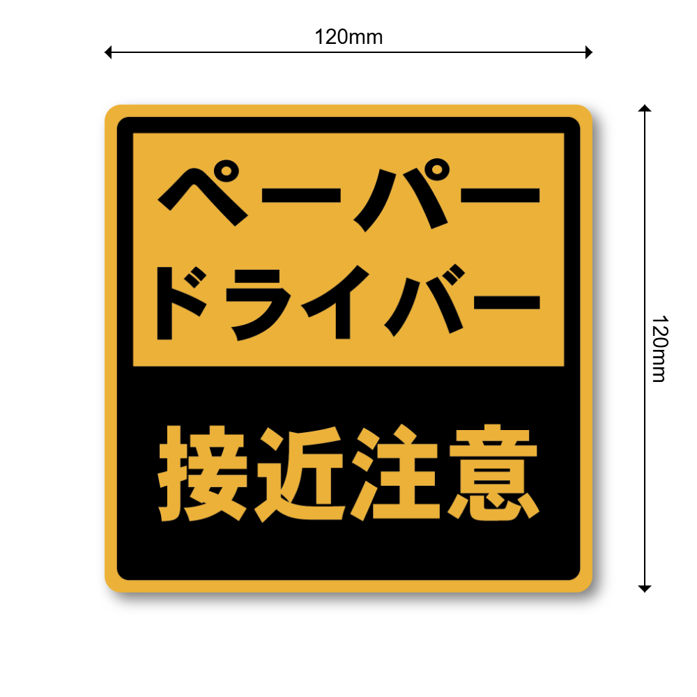 標識風デザインで「ペーパードライバー」を分かりやすく伝える:黄×黒の高コントラストで視認性に配慮した、車用のペーパードライバーアピールステッカーです。「ペーパードライバー」の表示で、周囲に状況をシンプルに伝え、落ち着いて運転したい時のサポートに。後方車両への注意喚起にもなり、通勤・買い物・送迎など日常の運転シーンに取り入れやすいデザインです。