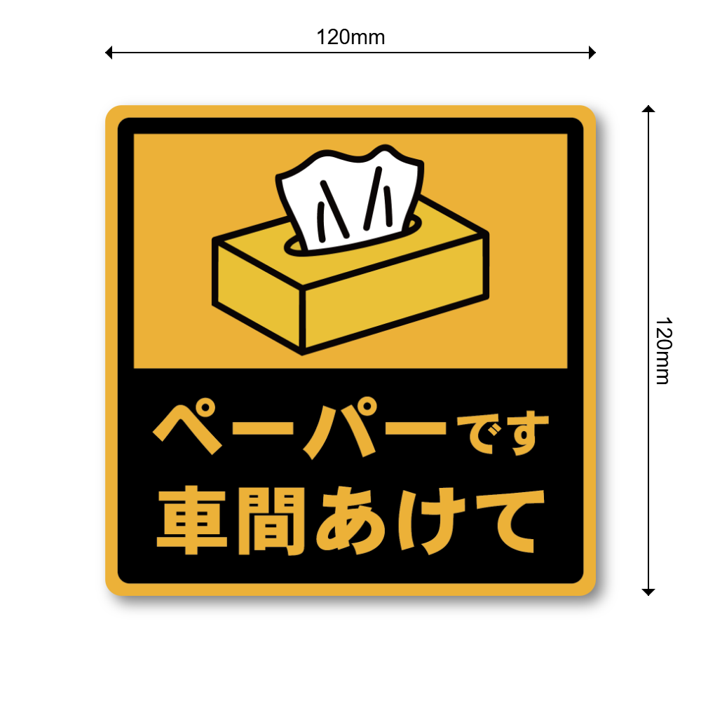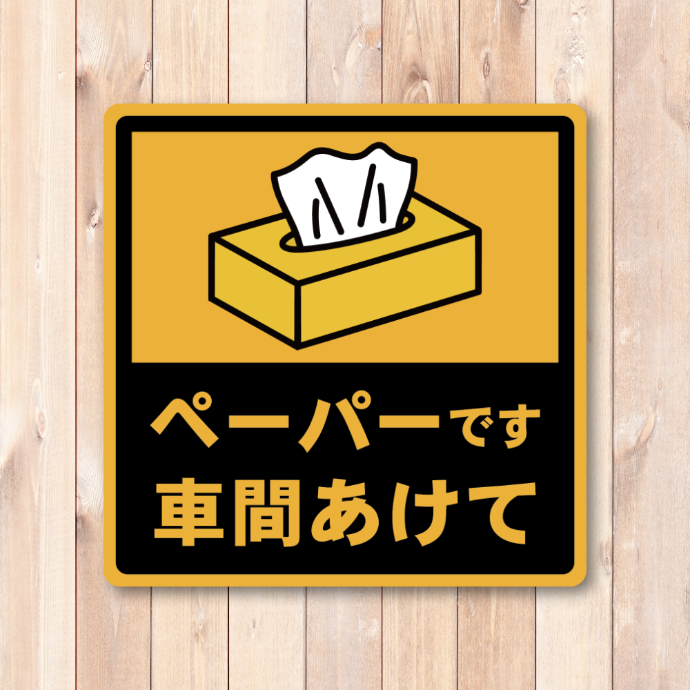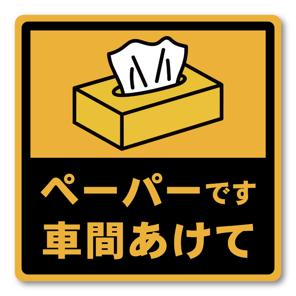 ペーパーです、をユーモアで伝える注意喚起:ティッシュ(ペーパー)モチーフのイラストで「ペーパードライバー」をやわらかく表現した、見やすく伝わりやすい車用ステッカーです。主張しすぎないのに視認性はしっかり。初心者ドライバーの不安を少し軽くしつつ、周囲へ配慮を促せます。デザインは「運転練習中」「車間あけて」の2種類から選べます。
