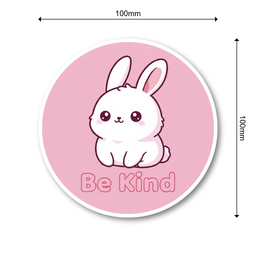 ミニマルアニマル丸形ステッカー(ねこ/うさぎ/あひる/くま/ペンギン/かえる)かわいい癒し系デザイン/防水ビニール製 100mm うさぎ