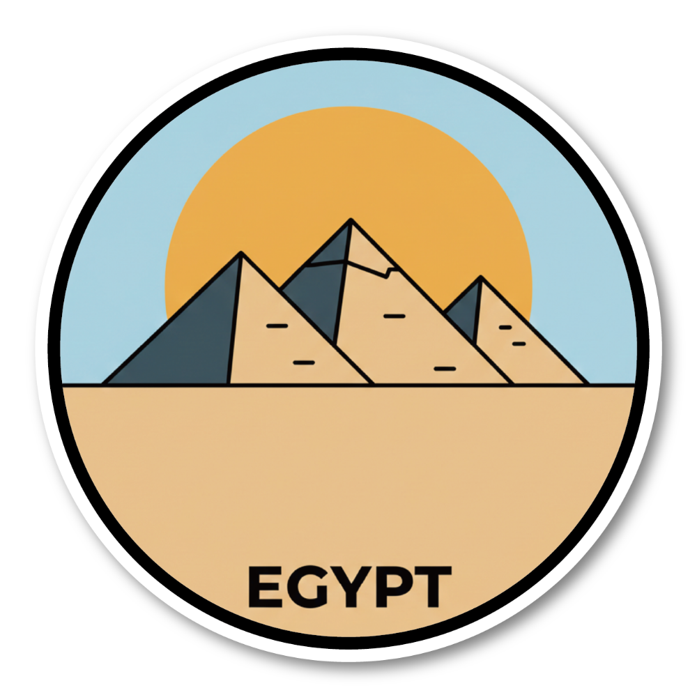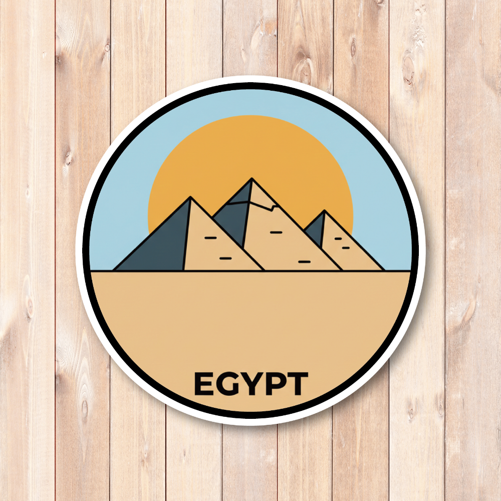 世界のランドマーク トラベルステッカー 円形デザイン 防水・耐候 スーツケース・車・タブレット対応 観光名所コレクションステッカー EGYPT