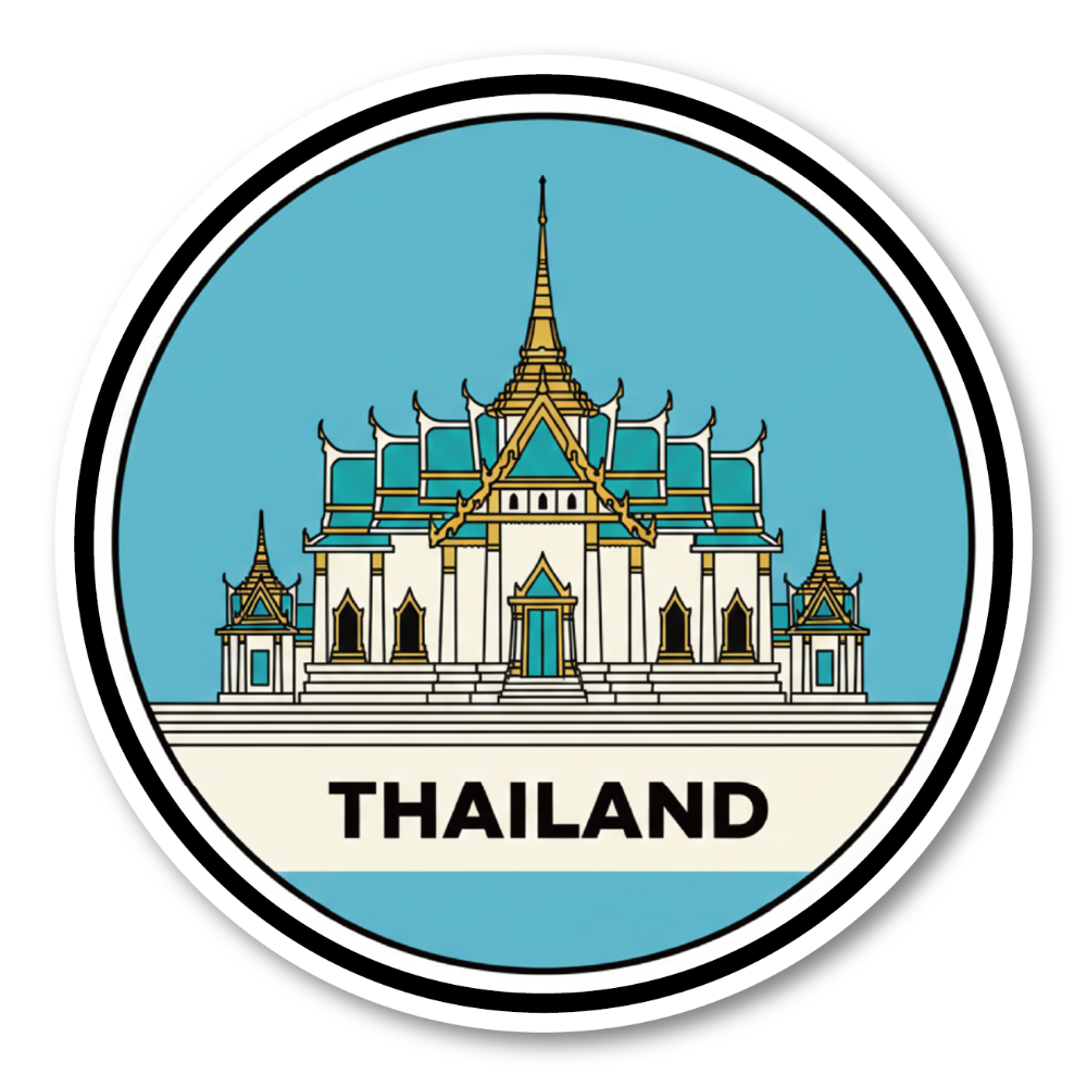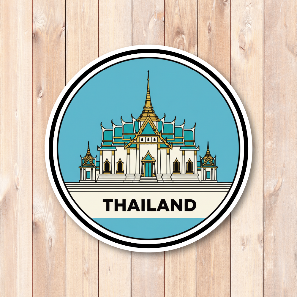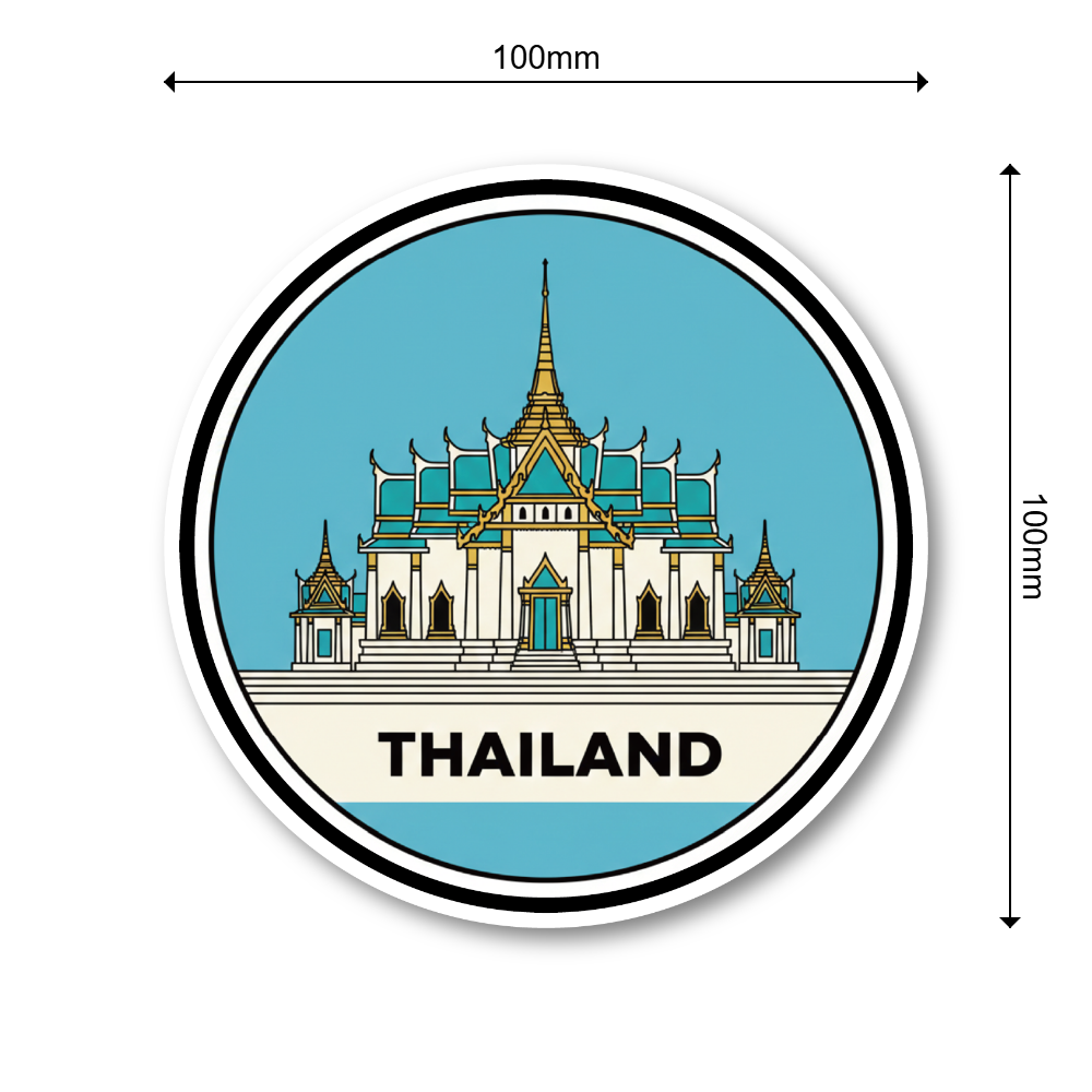 世界のランドマーク トラベルステッカー 円形デザイン 防水・耐候 スーツケース・車・タブレット対応 観光名所コレクションステッカー THAILAND