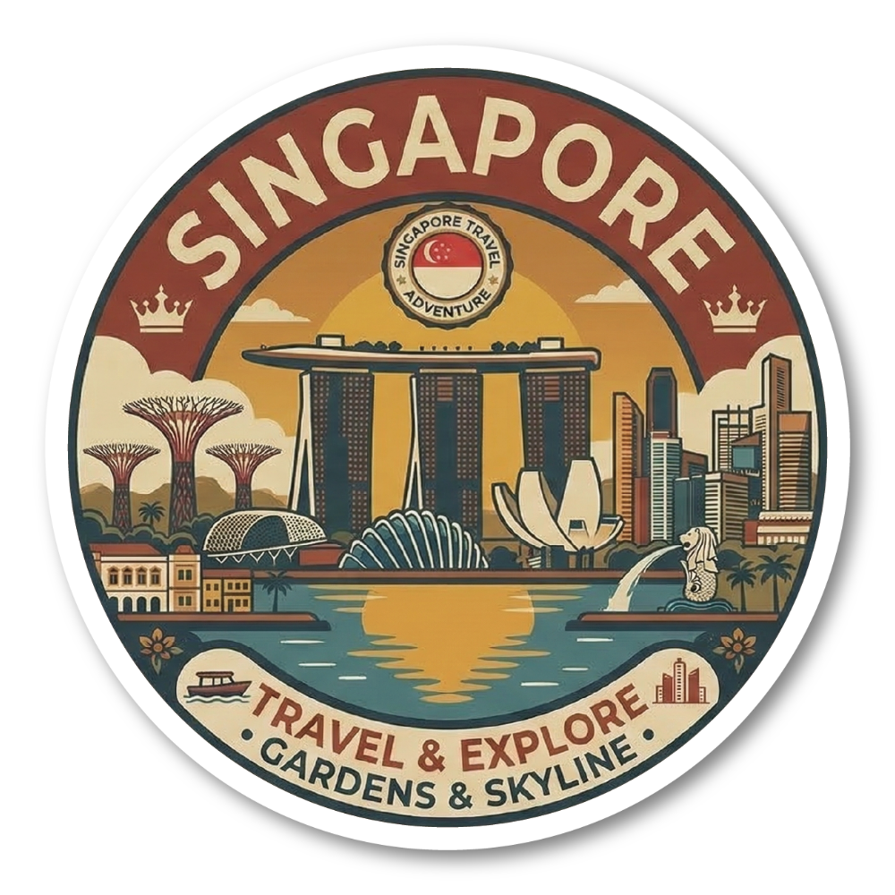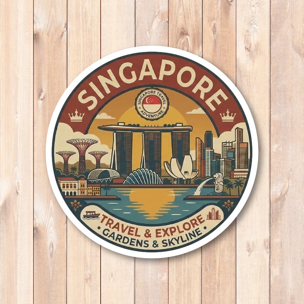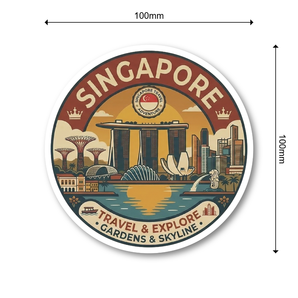 世界都市トラベルステッカー 円形 100mm パリ ローマ 東京 ソウル シンガポール ロンドン ニューヨーク バルセロナ 観光デザイン 防水 屋外対応 スーツケース 車用 シンガポール(SINGAPORE)