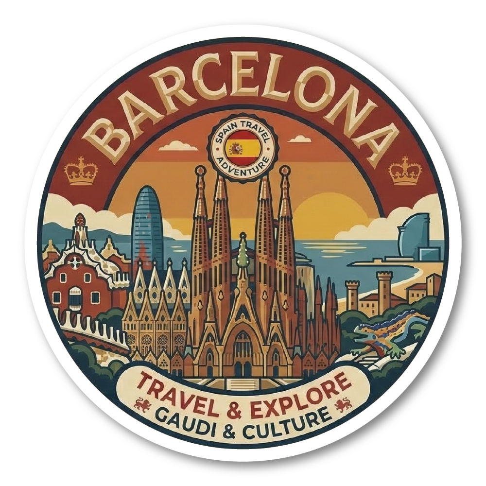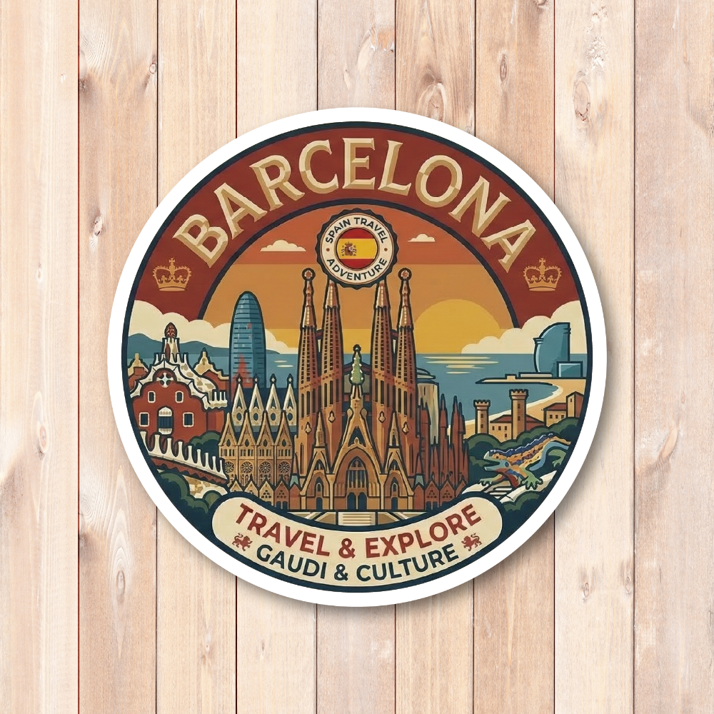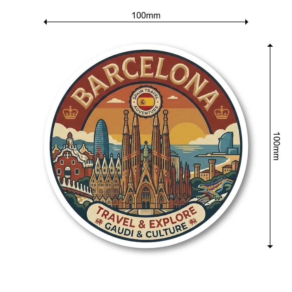 世界都市トラベルステッカー 円形 100mm パリ ローマ 東京 ソウル シンガポール ロンドン ニューヨーク バルセロナ 観光デザイン 防水 屋外対応 スーツケース 車用 バルセロナ(BARCELONA)