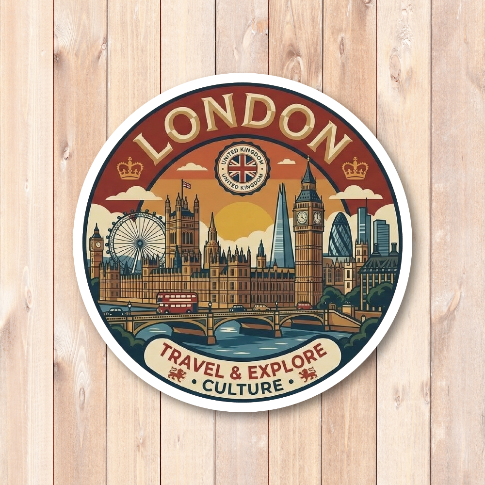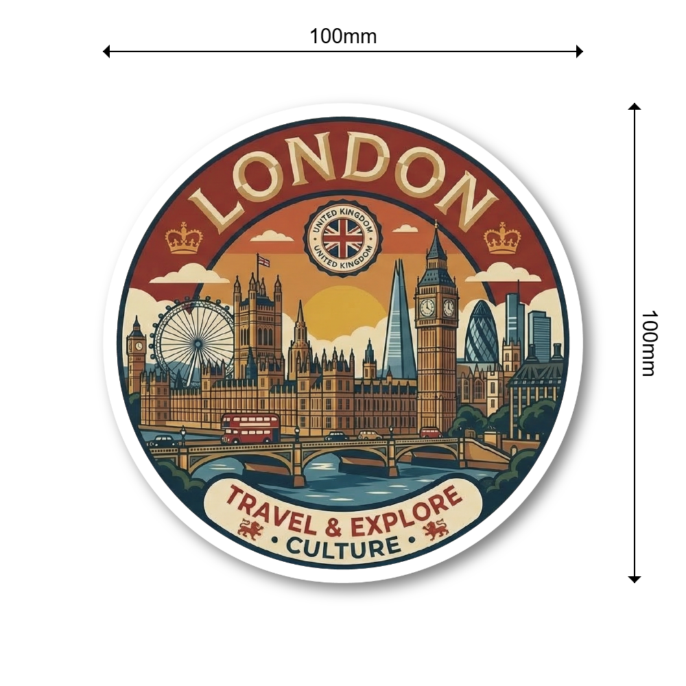 世界都市トラベルステッカー 円形 100mm パリ ローマ 東京 ソウル シンガポール ロンドン ニューヨーク バルセロナ 観光デザイン 防水 屋外対応 スーツケース 車用 ロンドン(LONDON)