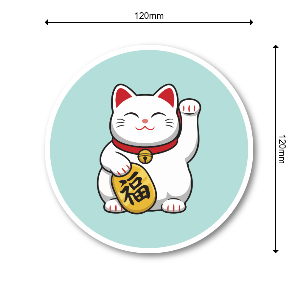 招き猫 ステッカー 丸型 120mm 日本 ラッキーキャット 車 スーツケース ノートPC 玄関ドア用 防水 耐候 縁起物 デカール パステルミント