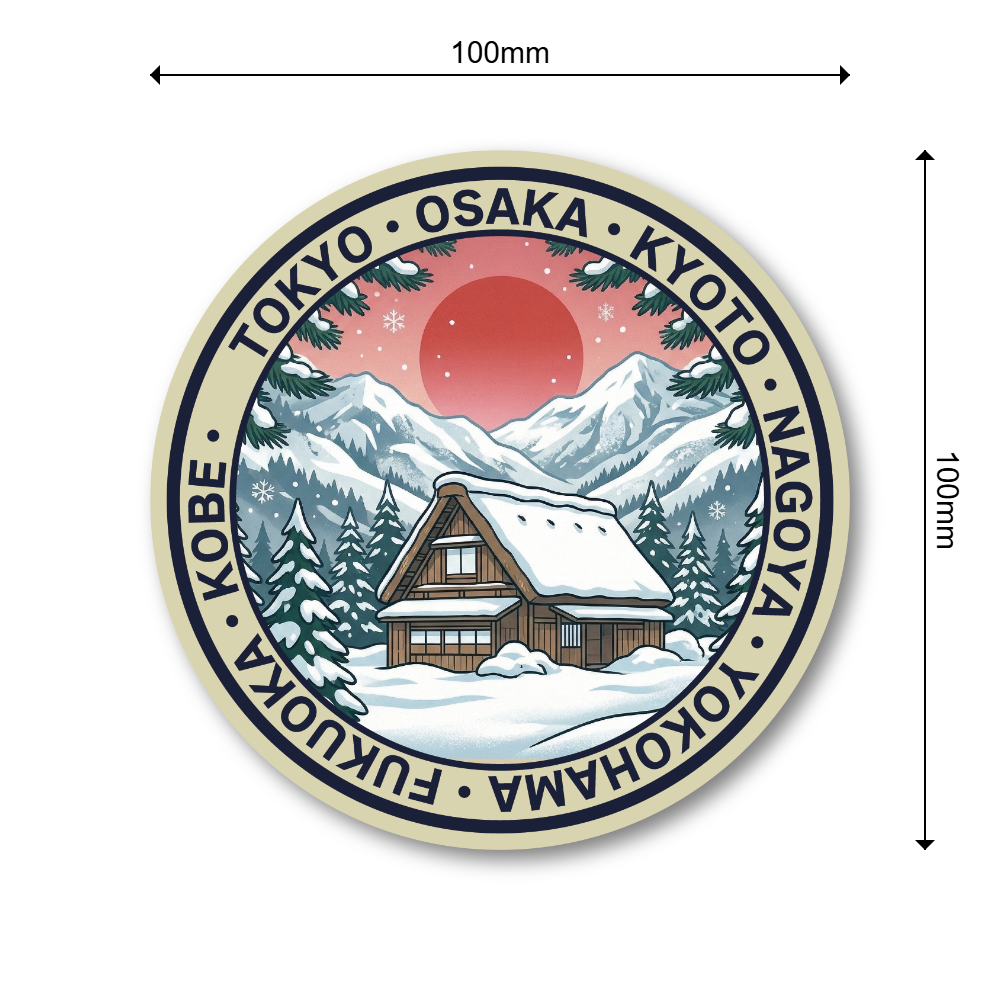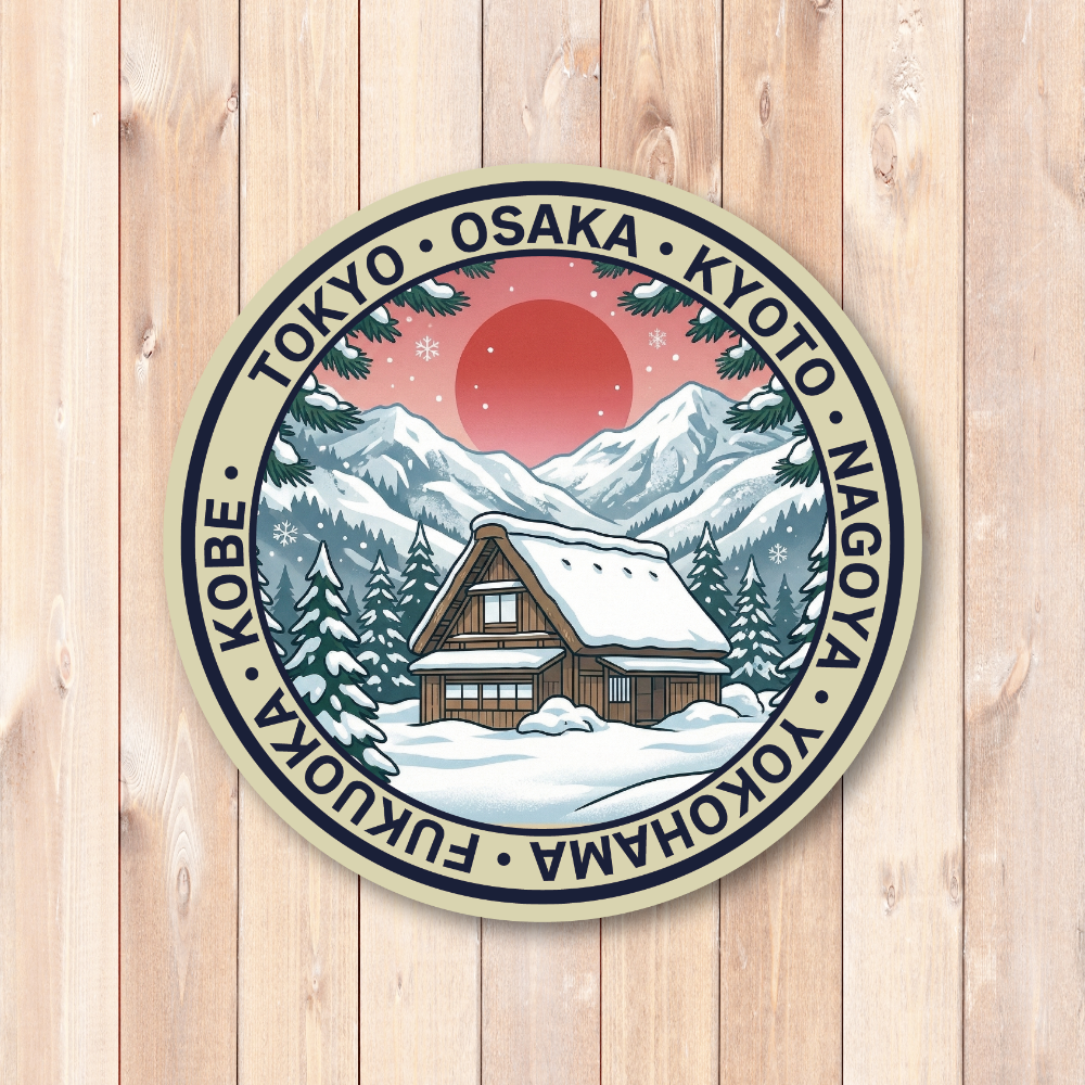 日本の魅力を詰め込んだトラベルステッカーコレクション:富士山、鳥居、日本の寺院、桜、寿司、招き猫など、日本を象徴する風景や文化をモチーフにした円形デザインのトラベルステッカーシリーズです。和の雰囲気を感じられる落ち着いた配色とイラストで、日本らしい美しさを表現しています。スーツケースやノートPC、タブレット、ウォーターボトルなどに貼れば、旅の思い出や日本への憧れを表現できるデザインです。複数デザインを集めてコレクションとして楽しむのもおすすめです。