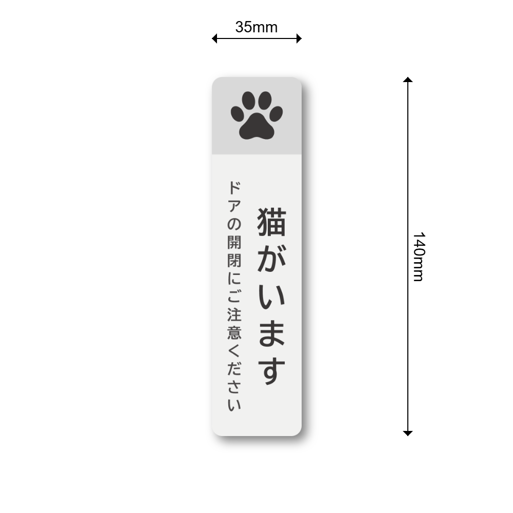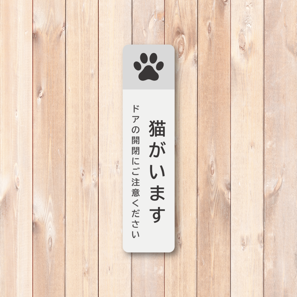 猫がいます ステッカー ドアの開閉にご注意ください 縦長スリム 玄関・室内ドア用 ペット脱走防止 注意喚起 シンプル肉球デザイン