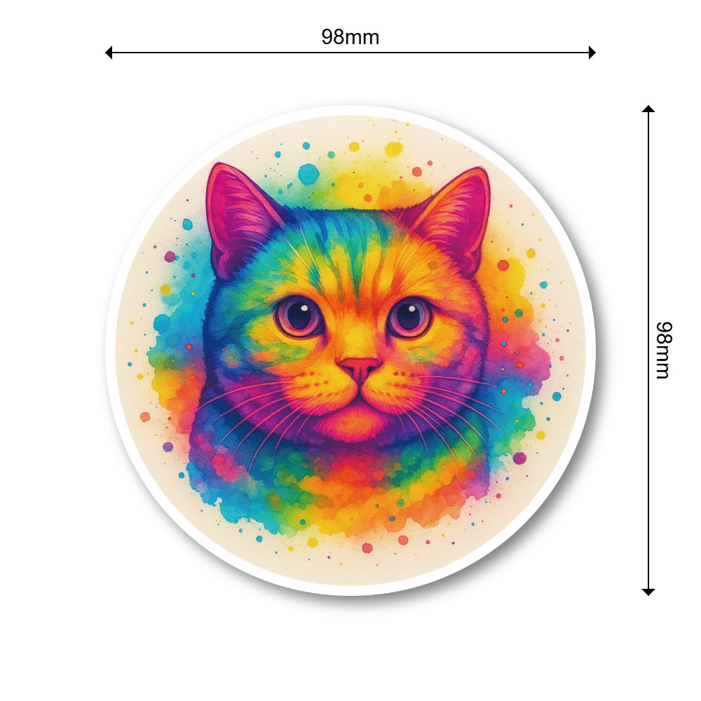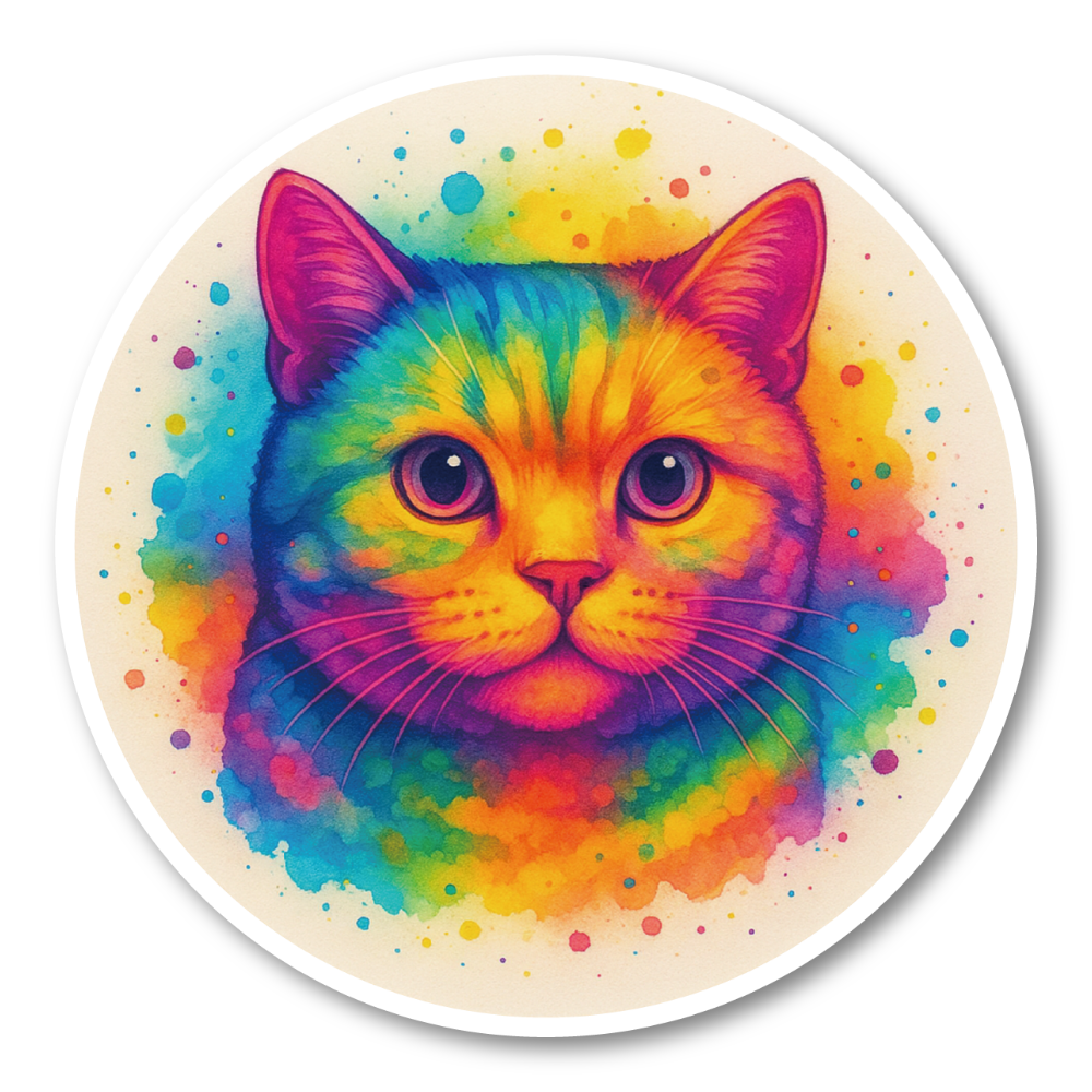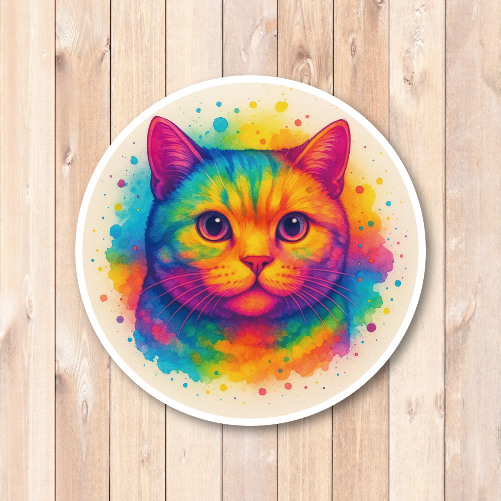 虹色アートキャットステッカー 水彩風 レインボーカラーの猫 防水デカール | 車・PC・スマホに | 猫好き・ペット愛好家へのギフトに最適 – ブリティッシュショートヘア