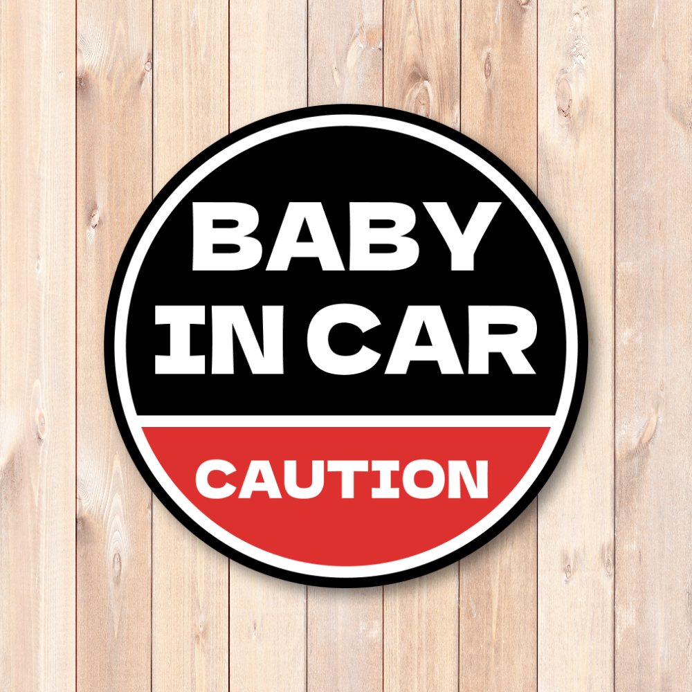 BABY IN CAR ステッカー 丸型|防水・耐候ラミネート|車用 注意喚起 サイン|リアウィンドウ/バンパー用|日本製 高発色 | ブラック × レッド