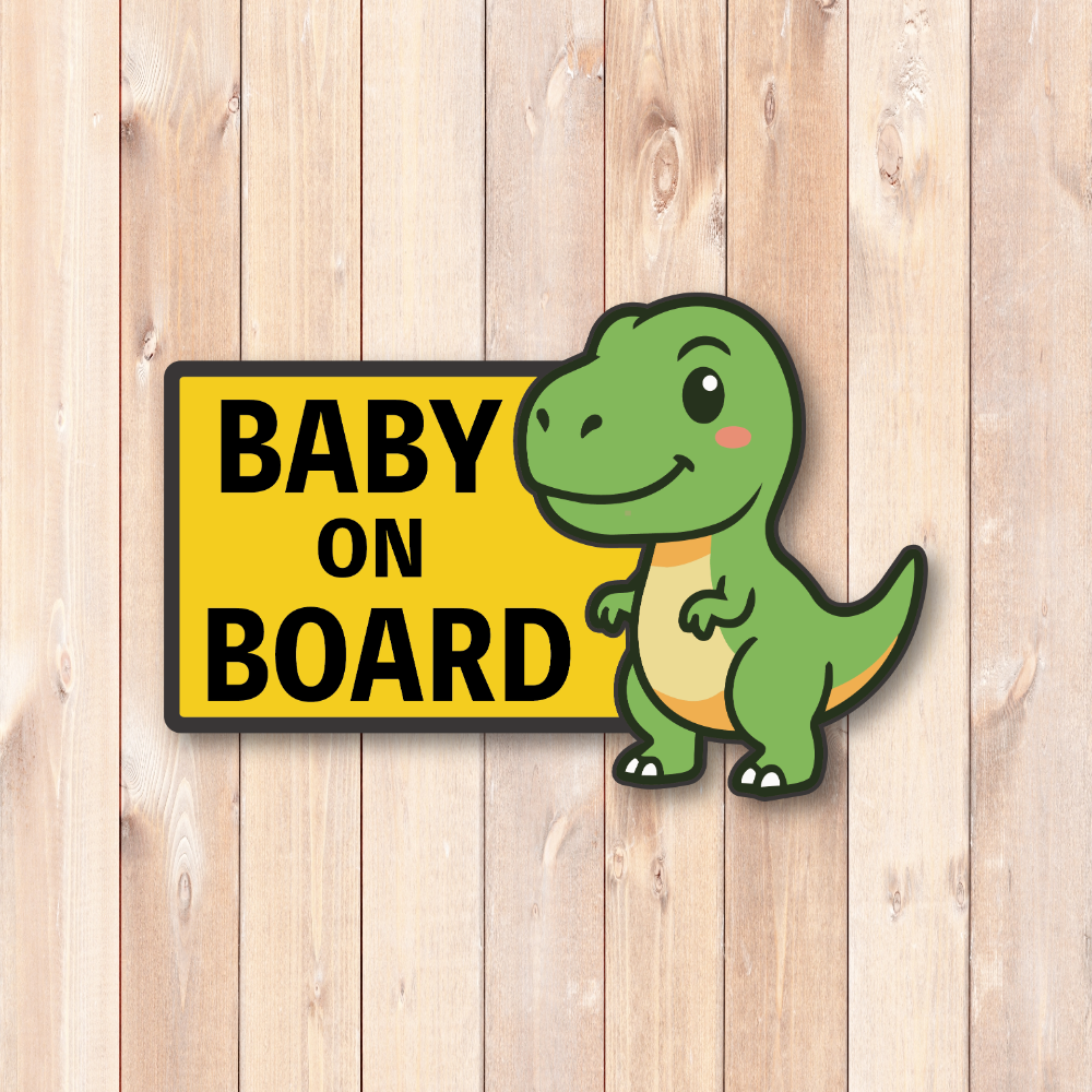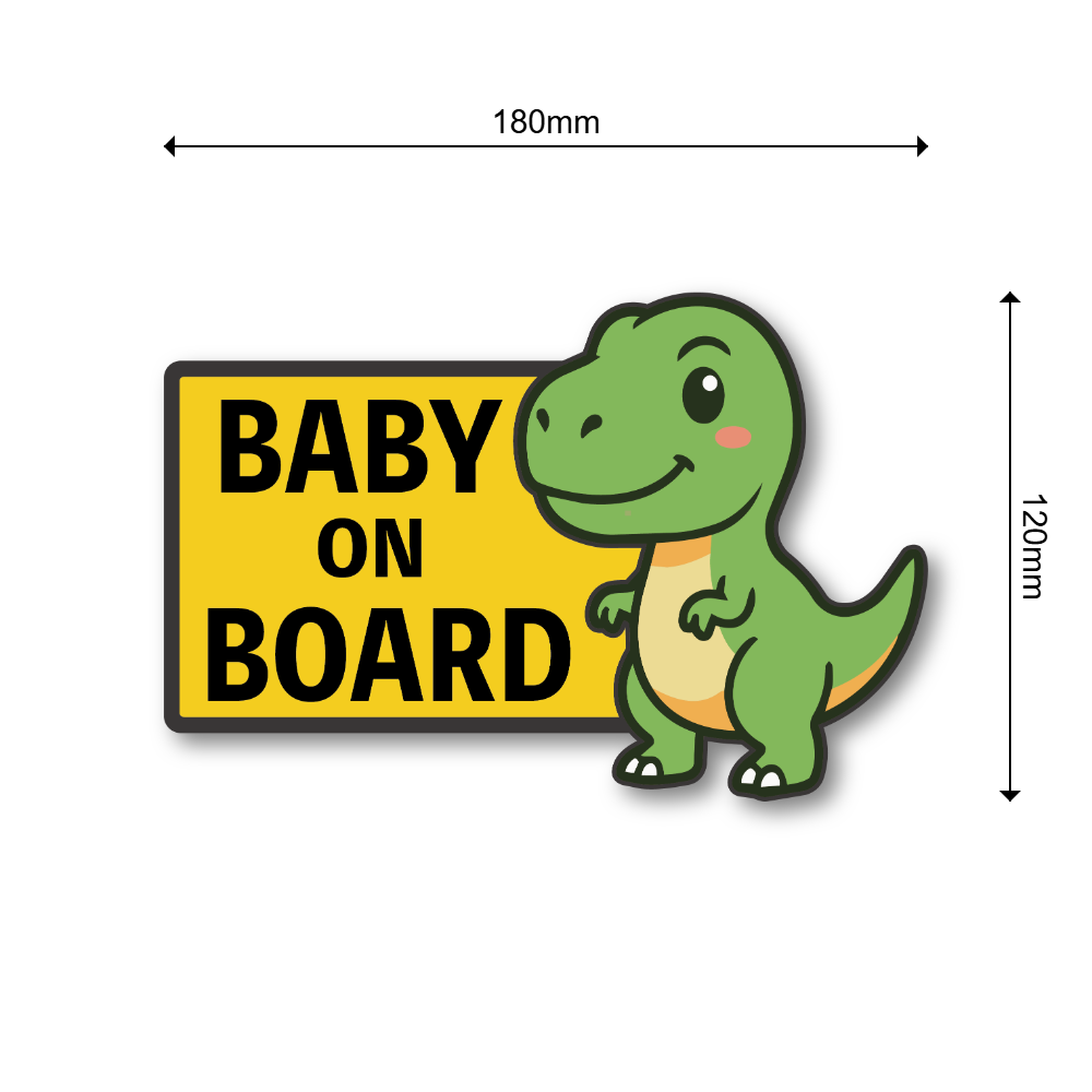 赤ちゃんが乗っていることをやさしく伝える恐竜デザイン:「BABY ON BOARD」のメッセージを大きく配置し、後続車へしっかりと注意喚起できる車用ステッカーです。かわいい恐竜キャラクターを組み合わせることで、強すぎないやさしい印象を保ちながら、必要なメッセージをしっかり伝えます。視認性の高い黄色背景と太字の英字で、遠くからでも読みやすい設計です。