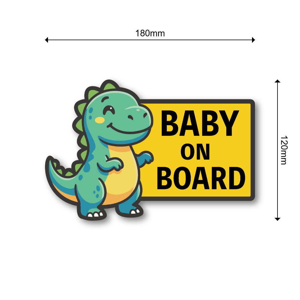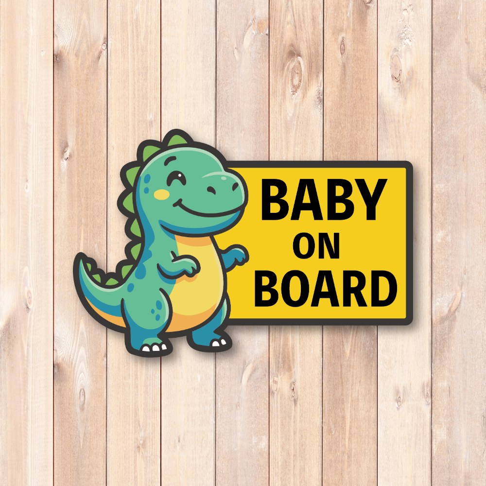 赤ちゃんが乗っていることをやさしく伝える恐竜デザイン:「BABY ON BOARD」のメッセージを大きく配置し、後続車へしっかりと注意喚起できる車用ステッカーです。かわいい恐竜キャラクターを組み合わせることで、強すぎないやさしい印象を保ちながら、必要なメッセージをしっかり伝えます。視認性の高い黄色背景と太字の英字で、遠くからでも読みやすい設計です。