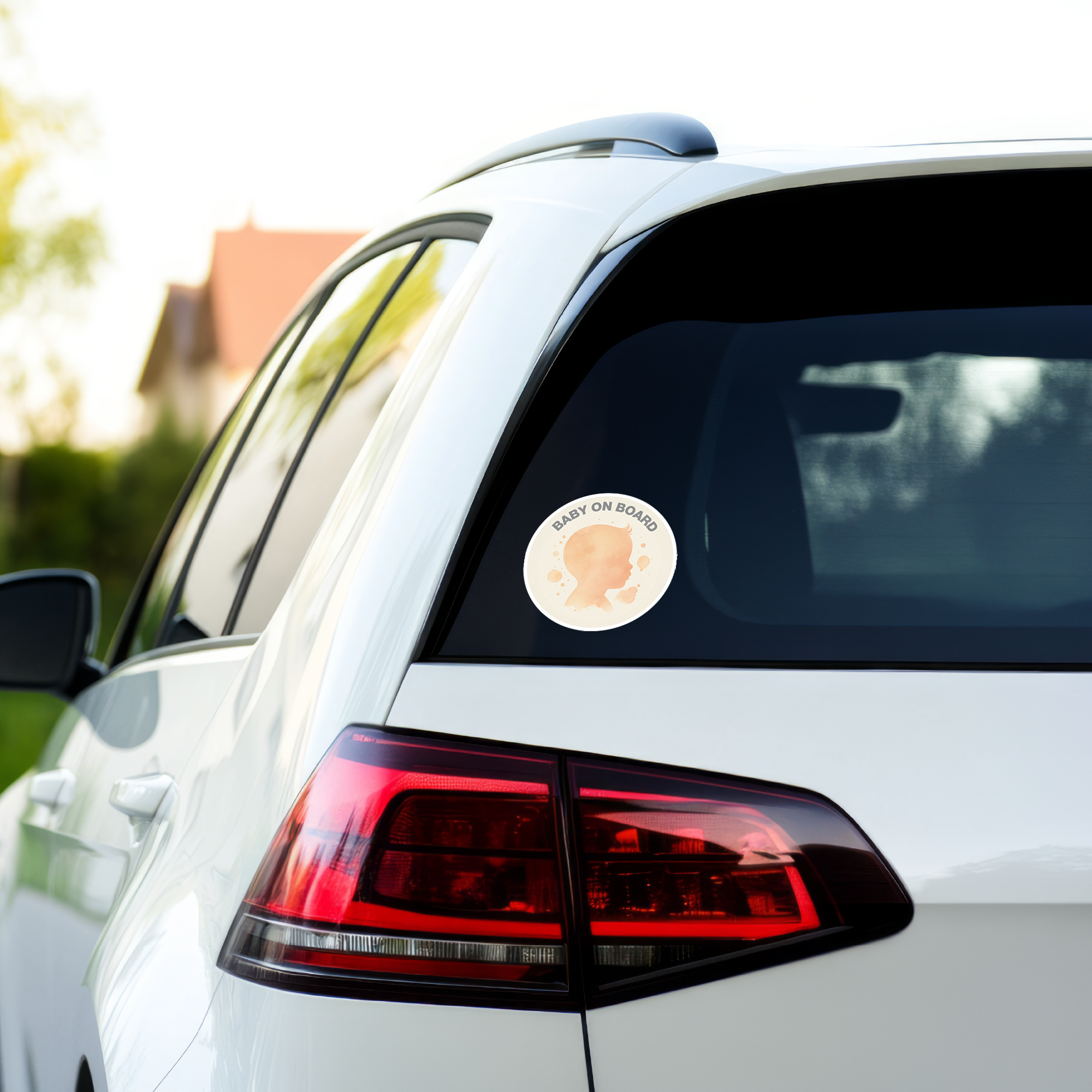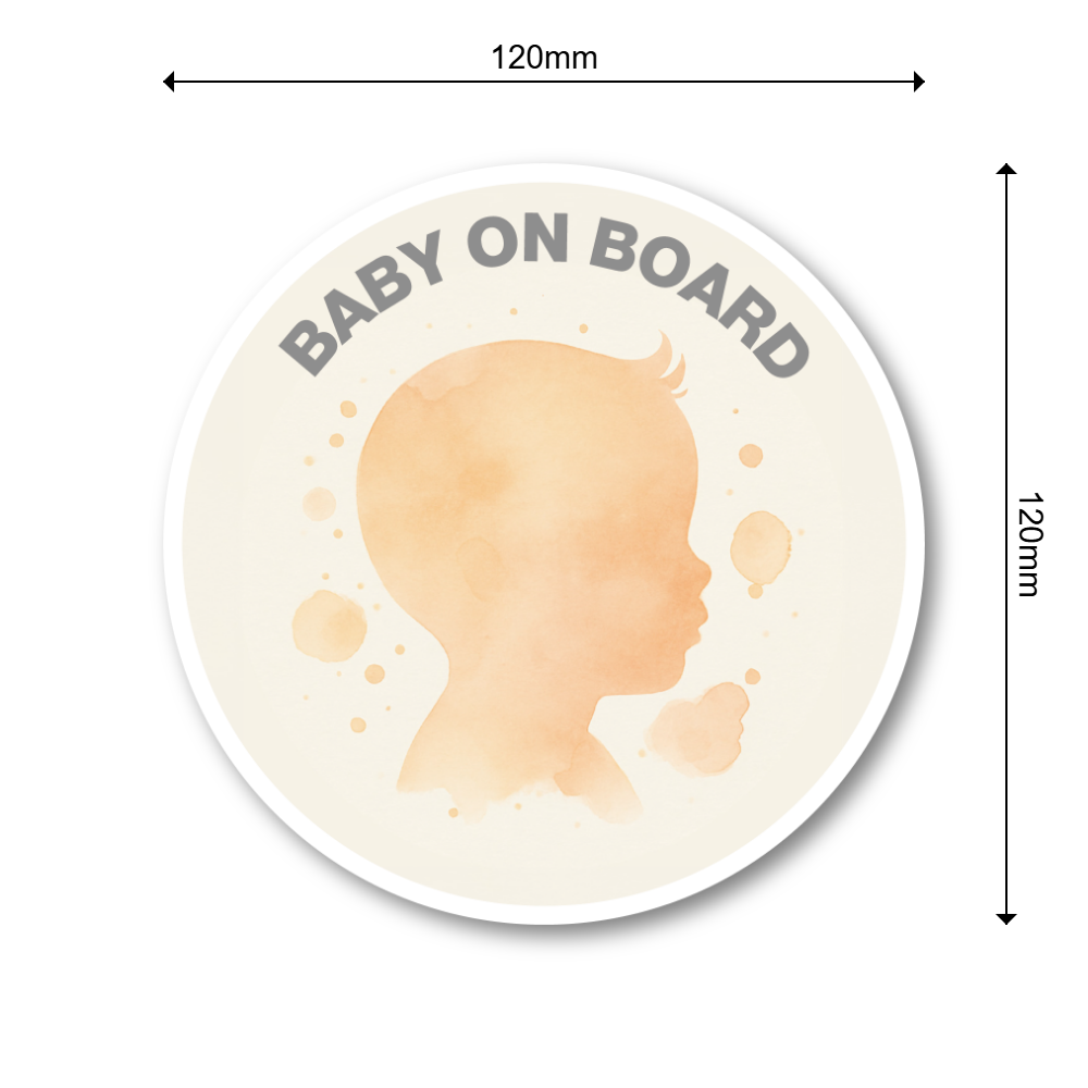 💡 水彩アートの上品デザインで大人の車にも馴染む BABY ON BOARD:柔らかな水彩タッチで描いた赤ちゃんのシルエットが特徴の、上品で落ち着いた「BABY ON BOARD」ステッカーです。ニュートラルな淡色ベースのため、白・黒・ネイビー・シルバーなど、どんな車体色にも自然に馴染みます。子どもっぽさを抑えつつも優しさのあるデザインで、はじめての育児世帯や大人向けの洗練されたステッカーを求める方に最適です。
