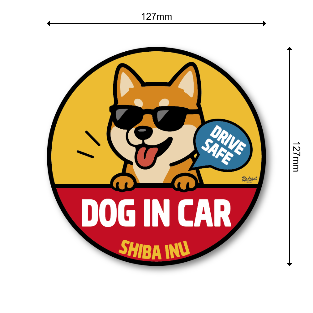 🚗【愛犬のための安全運転アピールステッカー】:大切な愛犬が乗っていることを後続車に優しく知らせる、おしゃれでかわいい「DOG IN CAR」ステッカーです。直径は目立ちやすい127mm (5インチ)の円形サイズ。サングラス姿のキュートな柴犬、チワワ、トイプードルなどが「DRIVE SAFE(安全運転)」を呼びかけます。万が一の際の救助要請と、後続車への注意喚起による煽り運転対策の役割を果たします。屋外使用に強いUVカット・防水加工を施した高品質な素材を採用しており、車のリアウィンドウやボディに色褪せしにくい状態で長くご使用いただけます。