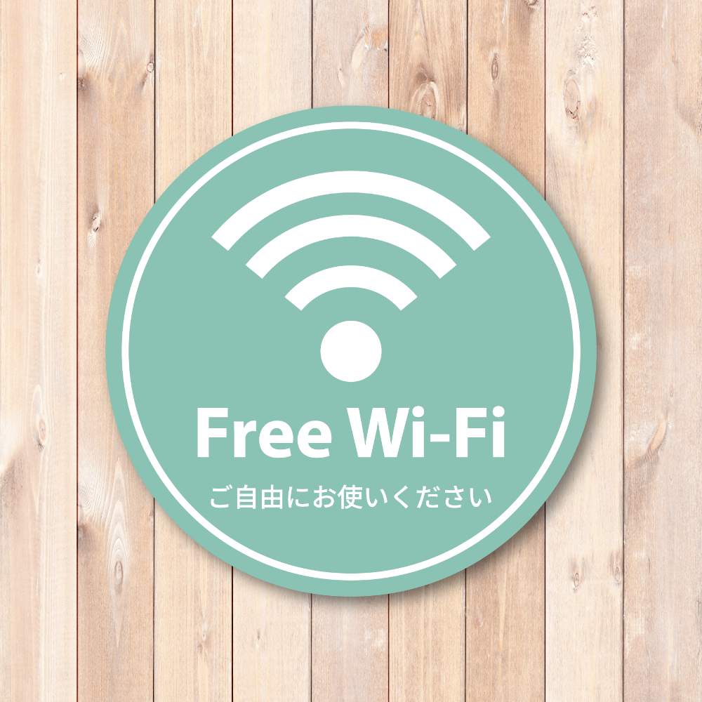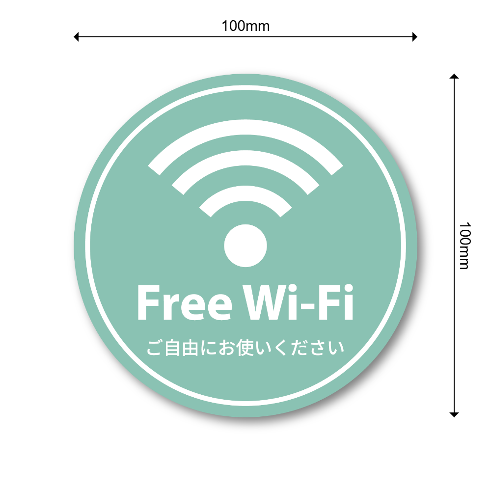 Free Wi-Fi ステッカー 丸形100mm 店内用 無料Wi-Fi案内シール 日本語入り カフェ・飲食店・民泊・サロン向け ミントグリーン