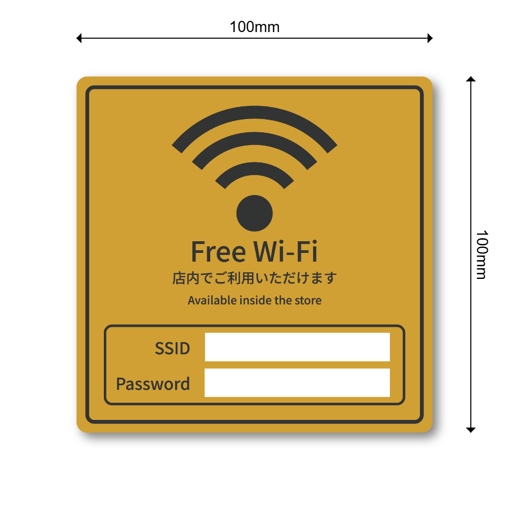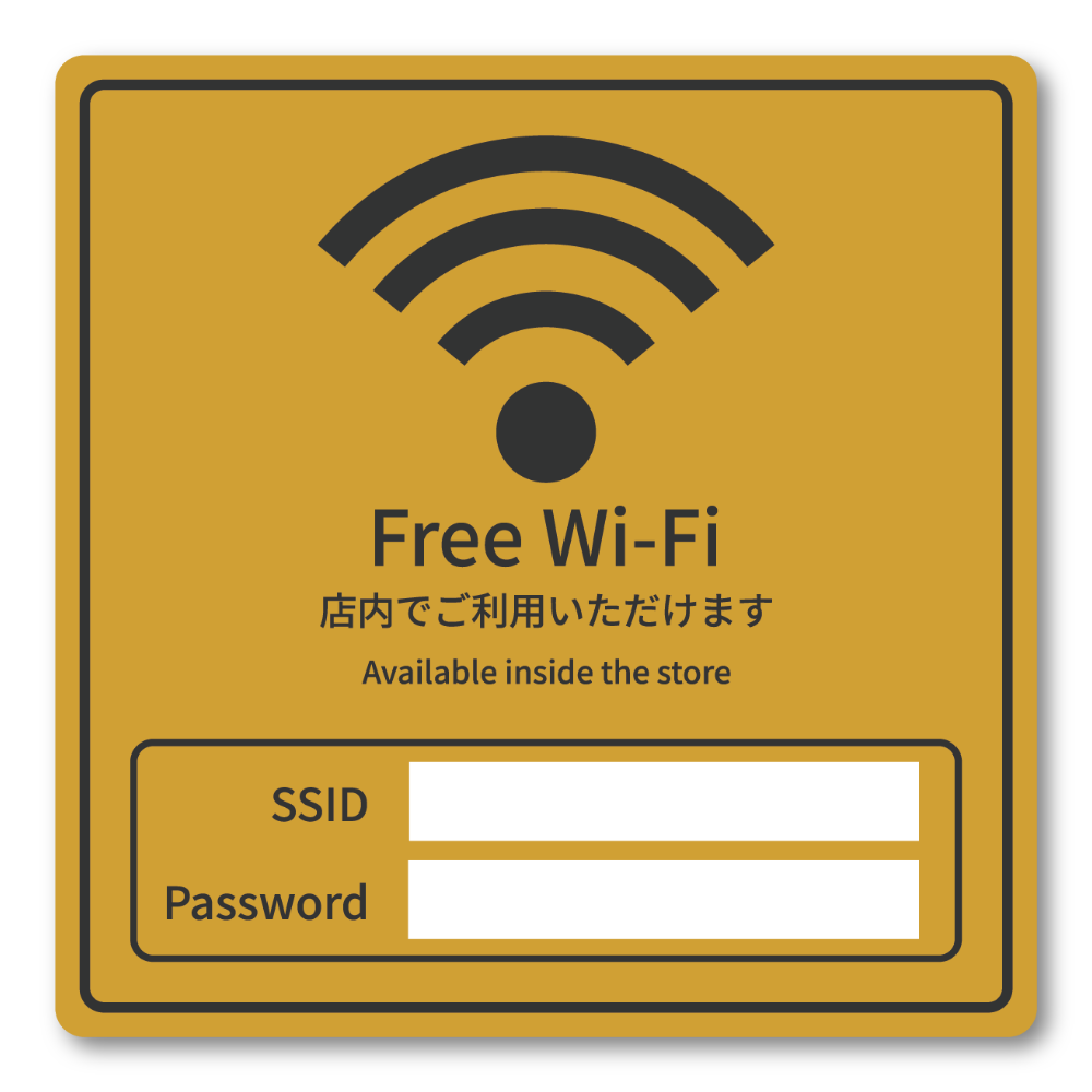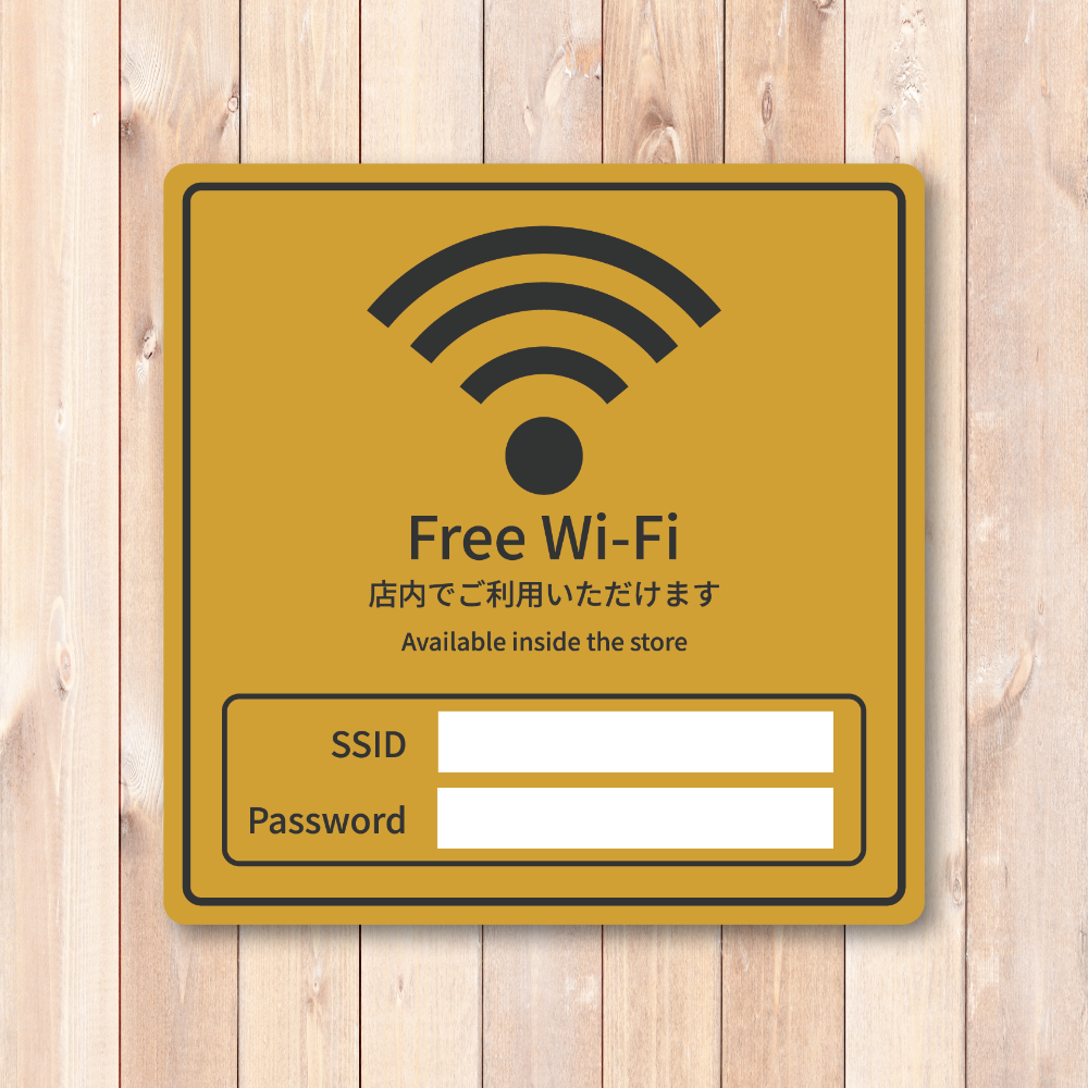 Free Wi-Fi ステッカー 店舗用 無料WiFi案内 SSID・Password記入欄付き 日本語&英語 表示プレート カフェ サロン オフィス 民泊向け マスタードイエロー