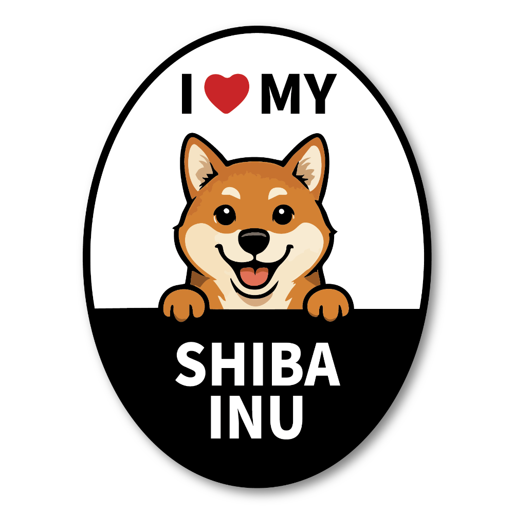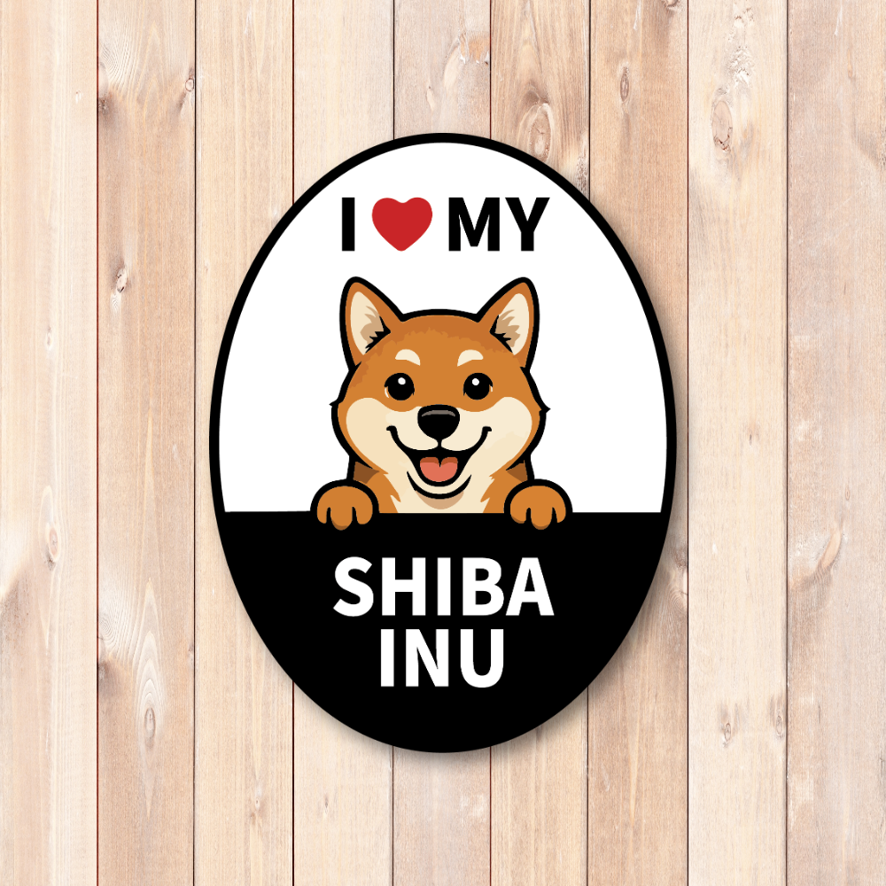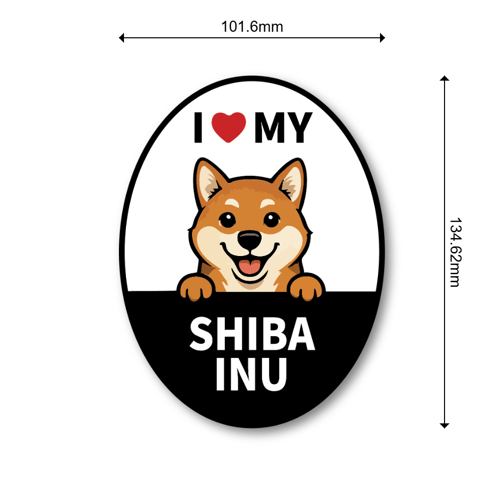 デザインの魅力:「I ♥ MY」のメッセージと、のぞき込むワンコが愛らしいオーバル型カーサイン。遠目でも読みやすい高コントラスト設計で、愛犬家アピールにぴったりです。気分や季節で付け替えられるのもマグネットならでは。