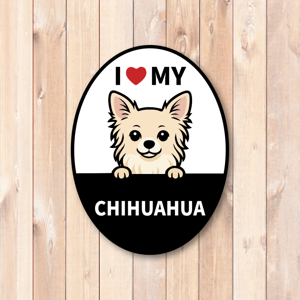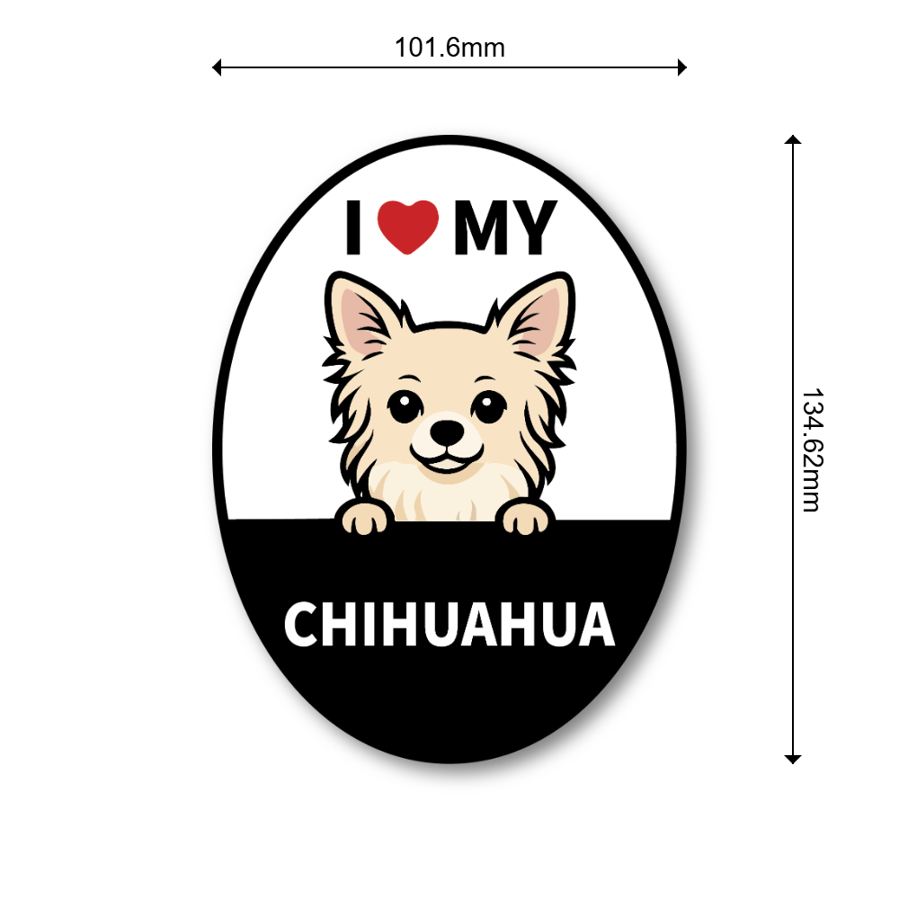 I LOVE MY 犬種マグネット|オーバル型カーサイン|貼ってはがせる車用マグネット(スチールボディ専用)|屋外対応 チワワ
