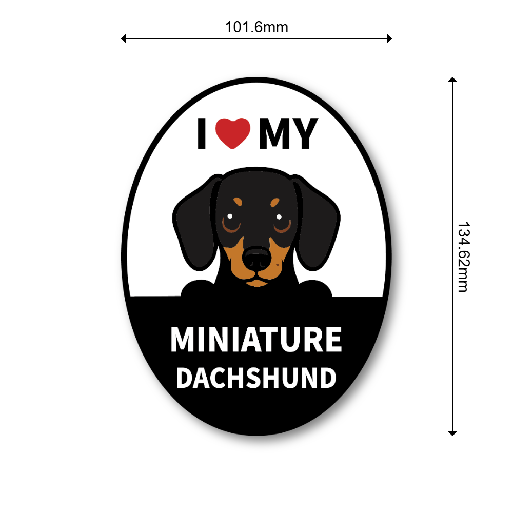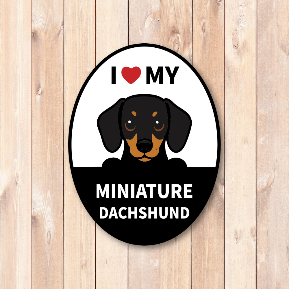 I LOVE MY 犬種マグネット|オーバル型カーサイン|貼ってはがせる車用マグネット(スチールボディ専用)|屋外対応 ミニチュア・ダックスフンド