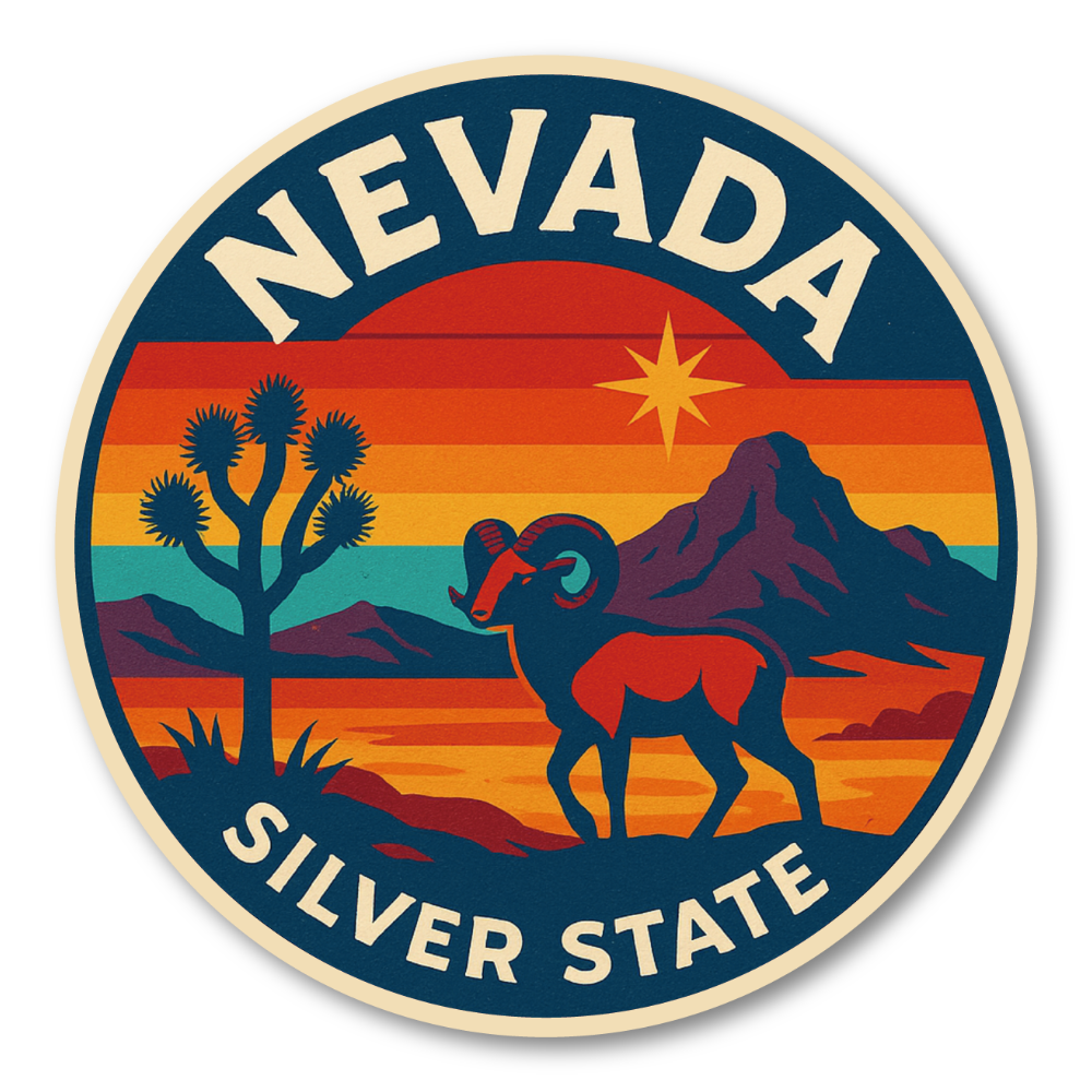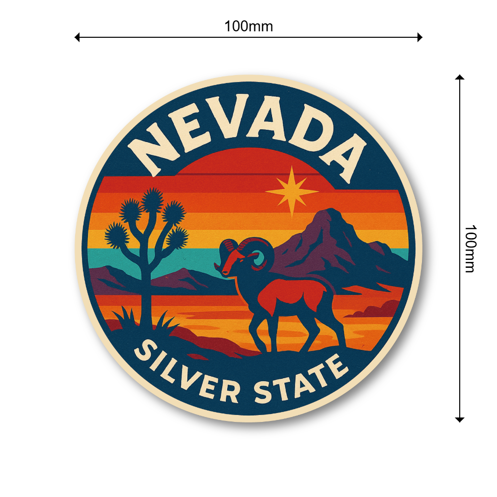 Retro USA State Travel 丸形ステッカー|レトロ観光ポスター風|防水・耐UV・屋外耐候|車/スーツケース/PC|NV ネバダ州