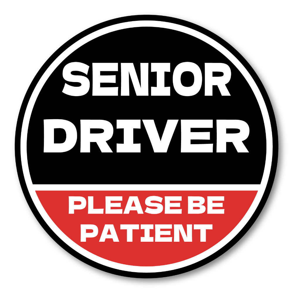 視認性とメッセージ性:「SENIOR DRIVER/PLEASE BE PATIENT」を大きく配置した丸型デザイン。遠目でも読み取りやすい太字フォントとコントラスト配色で、後続車へ「ゆずり合い・減速」のメッセージを明確に伝達します。通勤・買い物・送迎など、日常のあらゆるシーンで高齢ドライバーをやさしくサポート。